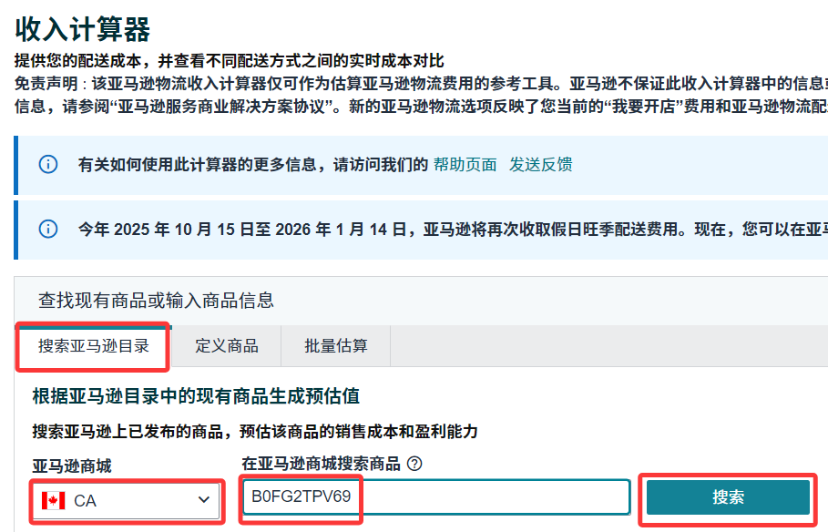 物流收入计算器:https://sellercentral.amazon.ca/revcal